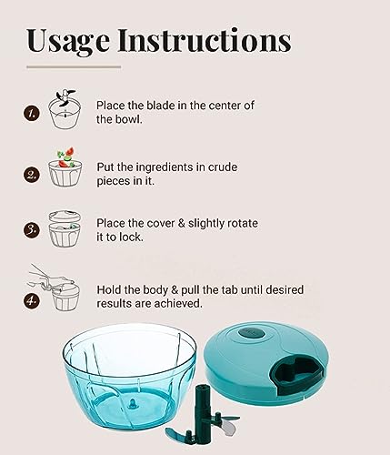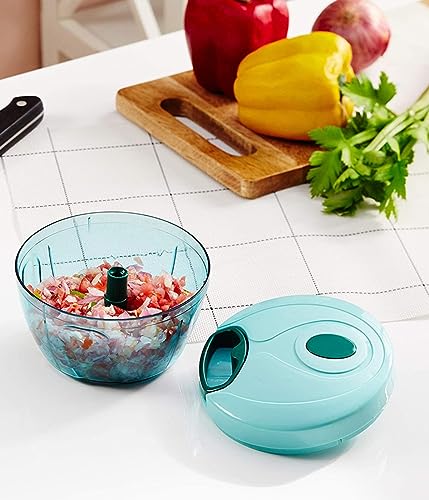 FEATURES: The chopper is equipped with a unique string function, 3 stainless steel blades, and a design that is BPA-free, rust-proof, food-safe, and dishwasher-safe.