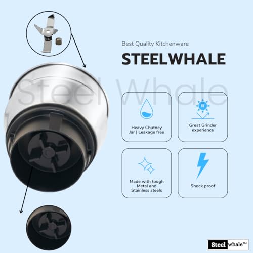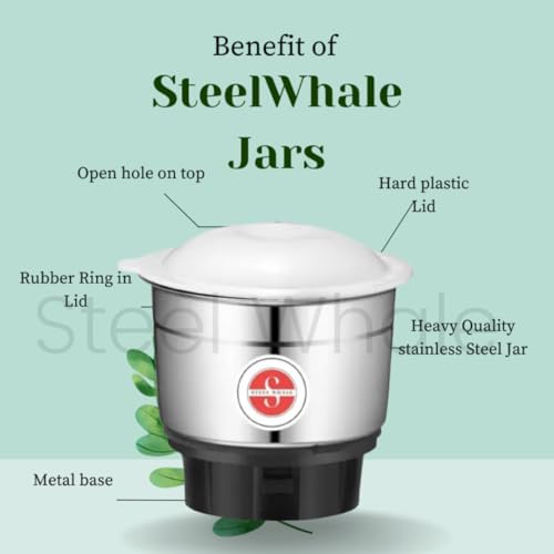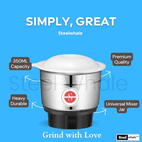 Steelwhale heavy Stainless Steel Mixer Chutney Jar brand presents Mixer pot,Mixer jar,Mixer Grinder Jar,Mixy pot,Mixer small pot,Mixer jar,Mixer Grinder,Kitchen tools (350ml,silver) Material : Stainless Steel Net Quantity (N) : Pack of 1 Capacity : 300ML, Suitable with 2 loocks and 4 teeth mixer jar and universal jar.