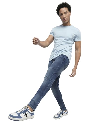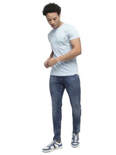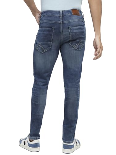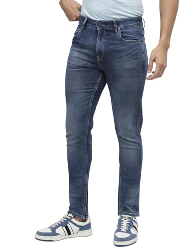 Jack & Jones Men Solid Cotton Blend Slim Fit Mid Rise Stretchable Dark Blue Jeans