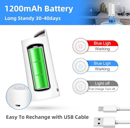 Wireless and Portable: The 5 gallon water pump is designed to be wireless and portable, making it convenient to use in the kitchen, living room, office, or even outdoors during picnics.