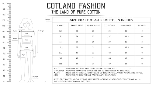 The COTLAND FASHION Jaipuri CottonPrinted Flared A-Line Dress for Women is a perfect combination of comfort and style. This beautiful dress features a flared A-line design that is perfect for any body type, making it a versatile choice for any occasion. The dress has a strappy and sleeveless design that is perfect for warm weather, and it also features a calf-length hemline that adds an extra touch of elegance to the overall design. One of the most notable features of this dress is the elastic waistband that ensures a better fit and enhances the wearer’s curves. This design element makes the dress comfortable to wear for long periods and provides a flattering silhouette for women of all shapes and sizes. This dress is perfect for a wide range of occasions, from casual outings to formal events. Its unique and vibrant Jaipuri print is sure to turn heads and make a statement wherever it’s worn. The dress can be paired with sandals or heels for a complete look, making it a versatile addition to any wardrobe. For a casual look, this dress can be paired with simple sandals and minimal jewelry. For a more formal occasion, it can be paired with statement jewelry and high heels. The dress can also be paired with a jacket or a shrug for an added layer of warmth or style. In summary, the COTLAND FASHION Jaipuri CottonPrinted Flared A-Line Dress for Women is a versatile and stylish addition to any wardrobe. Its flattering design, comfortable fit, and vibrant print make it perfect for any occasion, from casual outings to formal events.