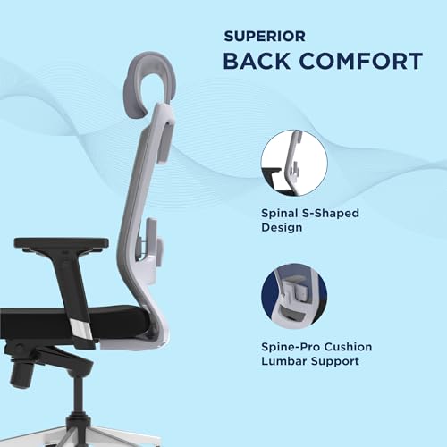 SpinePro Cushioned Lumbar Support: The ergonomic high back chair features the SpinePro Cushioned Lumbar Support, designed to support the natural curve of your spine and alleviate back pain by providing full support to your lumbar region. The contoured cushion of the office chair enhances circulation and reduces stress on your lower back.