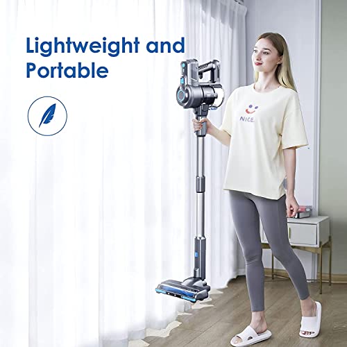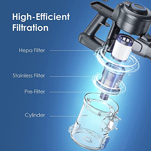 【Detachable & Rechargeable Battery】Cordless stick vacuum provides up to 35mins running time for the whole house cleaning (1937.50 sq ft / 180㎡). The removable battery of the cordless vacuum cleaner can be easily charged anywhere. Enjoy the housework by now!