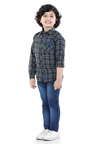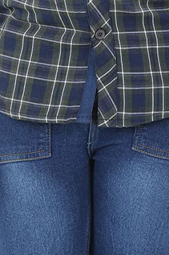 Shirt Feature – Checkered Pattern, Spread Collar Neck, Full Sleeve, Button Closure :: Jeans Features- Skinny-fit jeans feature four pockets, flat rivets, fly and button closure with belt.