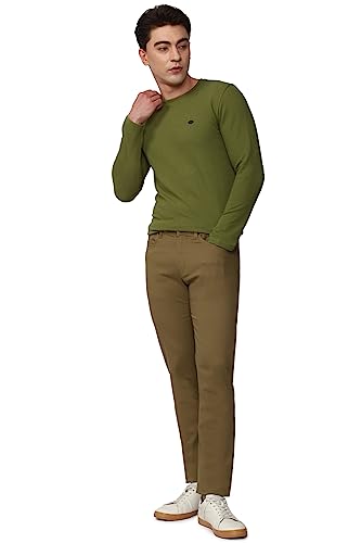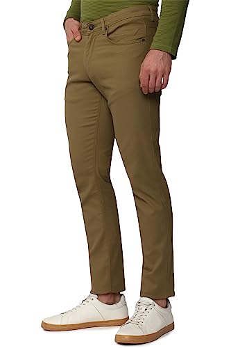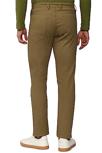 Mens Skinny Fit Dark Khaki Solid Casual Trouser