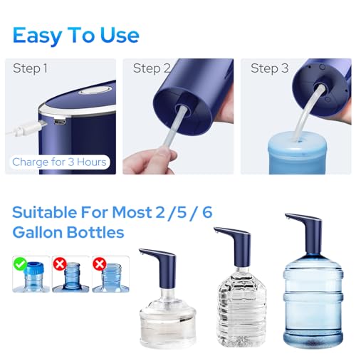 [USB Rechargeable] This water dispensing pump is USB rechargeable, which means you can recharge it using your car charge, power bank, or any other USB-powered device, making it more convenient to use, and you don’t need to worry about replacing batteries frequently.
