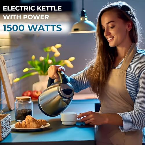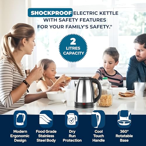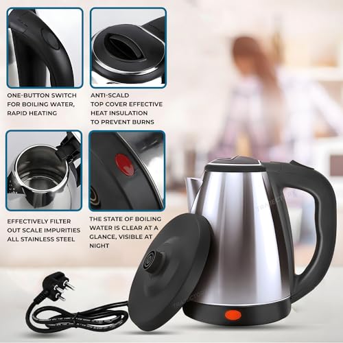Generous 2L Water Capacity: Enjoy the convenience of an ample 2L water capacity, reducing the frequency of refills compared to standard 1.2L kettles, providing enough water for up to 8 glasses at a time.