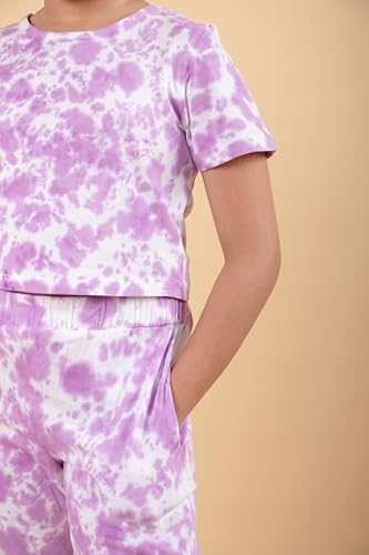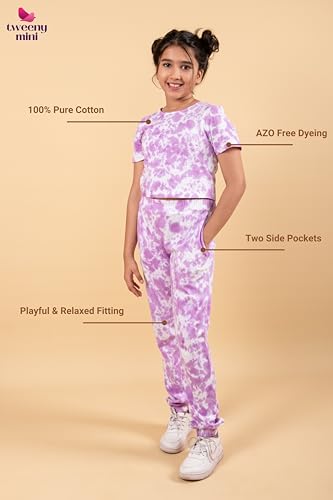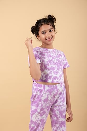 Vibrant tie-dye design: The co-ord set features a vibrant tie-dye pattern that adds a fun and trendy look to your product. The colors are perfect for the summer season and will appeal to kids and parents alike. Pure cotton fabric: The joggers pant and crop top are made from pure cotton fabric, which is highly breathable and comfortable for kids to wear during hot summer days. It ensures optimal comfort and prevents skin irritation. Coordinated set: The joggers pant and crop top come as a coordinated set, allowing for easy and convenient dressing. The matching design adds a stylish touch, making it a complete and fashionable outfit for girls. Joggers pant: The joggers pant features an elastic waistband and cuffs, providing a comfortable and adjustable fit. The relaxed fit allows for easy movement, making it suitable for active kids. Crop top: The crop top is designed with a trendy cropped length, offering a fashionable look. It has a comfortable and loose fit, allowing for breathability and freedom of movement. Versatile styling options: The co-ord set can be styled in various ways, offering versatility for different occasions. It can be worn together for a coordinated look or mixed and matched with other pieces from the wardrobe. Suitable for girls: The co-ord set is specifically designed for kids girls, taking into consideration their style preferences and comfort needs. The size range and design elements cater to their unique fashion sense. High-quality construction: The co-ord set is crafted with attention to detail and made with high-quality materials. The stitching and finishing ensure durability, allowing the product to withstand regular wear and washing. Easy care: The pure cotton fabric is easy to care for, making it convenient for parents. The co-ord set can be machine washed and tumble dried without losing its shape or color vibrancy. Trendy summer fashion: The tie-dye pattern, comfortable fabric, and stylish design make this co-ord set a perfect