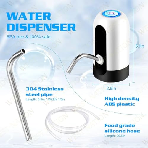 USB Rechargeable – The water bottle dispenser has a built-in 1200mAh high-capacity rechargeable battery that can be used for 30-40 days.