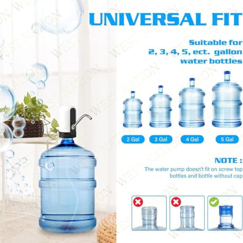 Suitable for – 4.5L, 5L, 7.5L, 10L, 11.3L, 15L, 18.9L (2, 3, 4, 5 Gallon Water Bottles). Note: Water jug dispenser fits gallon buckets with a neck of 2.16 inches (5.5 cm).