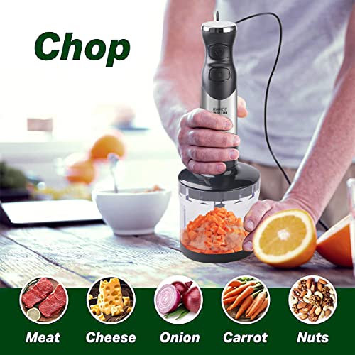 4 IN 1 HAND BLENDER: This Hand blender comes with Chopper, Egg whisk, and Multipurpose Jar. With these attachments it is a great assistant in the kitchen – protein shakes, soups, mayonnaise, sauces, salsa, smoothies, whipped cream, food processing will be much easier.