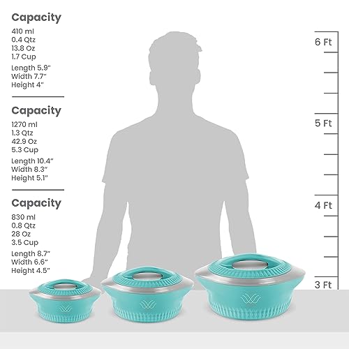 Colour: Blue; Material: Inner Stainless Steel; Package Contents: 3 – Pieces Royal Casserole (410 ml, 830 ml, 1.27 Litres); Product Dimension in cms (L x W x H) 410 ml – (19.6 x 15 x 10.3), 830 ml – (22.1 x 17 x 11.5), 1.27 Litres – (26.6 x 21.3 x 13); (For any query/assistance please contact us.