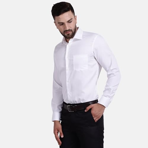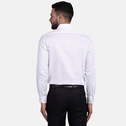 Cotstyle White Colour Luthai Supima Mercerised Cotton Fabric Check Textured Coller Neck Short Length Slim Fit Full Sleeve Men’s Formal’s Shirt’s Pack Of 1