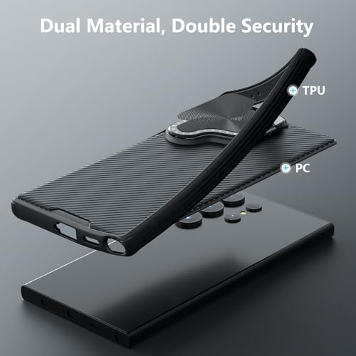 ✅【Sturdy Metal Kickstand】The highlights of this 2- in -1 new designed S24 Ultra hard case is that its camera cover is also a kickstand, which makes your phone looks simple, but functional. Buckle Design,Perfect Fit and Never Loose. Besides, this metal kickstand can be adjusted from 0° to 180°, with this s24 ultra slim case with stand, you can free your hands and easily adjust the suitable angle to watch movies at any time.