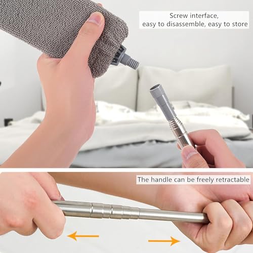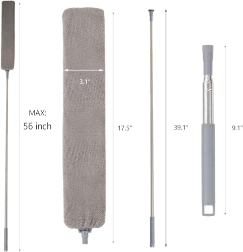 The duster handle is made of heavy duty stainless steel, can be adjusted freely from 30 inches to 60 inches according to your actual needs, help you clean under appliance easily. The microfiber cloth cover let you sweep ash and dust easier!
