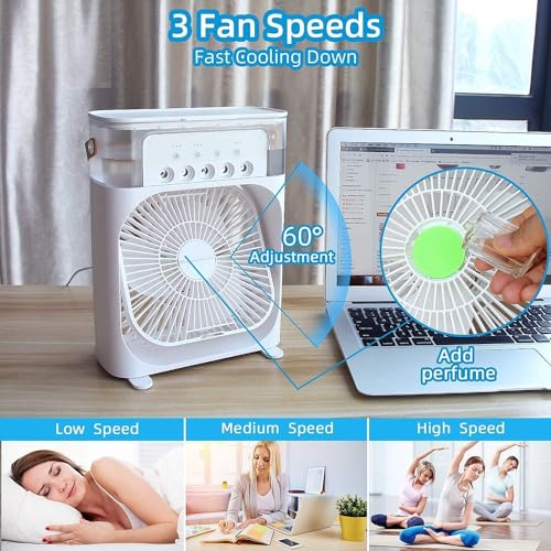 Mini Air Cooler is easy to use – simply fill the water tank, plug it in, and turn it on. It also features a built-in LED light, making it a great addition to any room at night. Its compact size means you can take it with you wherever you go, whether it’s to the office, the bedroom, or even on vacation. Unlike traditional air conditioners, this mini air cooler is eco-friendly and energy-efficient, making it an affordable and sustainable choice for those who want to stay cool without breaking the bank. Plus, its sleek and modern design will complement any decor style. Stay cool and comfortable all summer long with our Mini Air Cooler – the perfect way to beat the heat. The whisper-quiet fan and soothing night light make it perfect to use throughout the night for a comfortable sleep. Simply fill with water, plug it into any standard wall outlet or USB port and enjoy! It runs up to 8 hours per fill. Arctic Air is an evaporative air cooler that allows you to create your own personal climate.