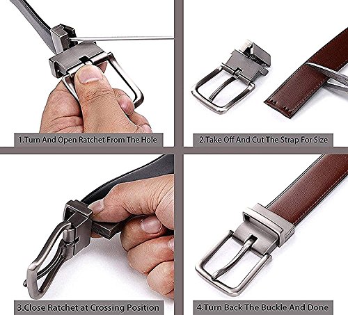 Reversible Belt- Black and Brown ( 48 Inch Length ) Two in one :- reversible belt, twist buckle as mentioned in picture to change belt side Detachable buckle :- belt buckle can be detach easily. Also belt size can be shorten in case of long belt, High Quality PU Leather Free Size Belt Made of artificial leather (pu leather) belt. Specially design for those who do not like animal leather product To Adjust Size of Belt Remove the Buckle and Cut as per Your Requirement. The Buckle design may slightly vary as per availability.