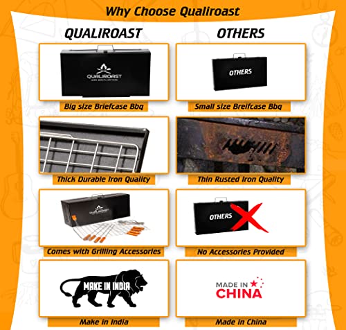 Qualiroast Barbeque Grill Set for Home Chicken Griller Barbeque Grill Breifcase,Portable Tandoori Grill for Home,Outdoor, Charcoal Bbq Grill Set
