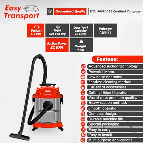 Keeping things clean and germ-free has never been easier! The TEXUM – Wet and Dry Vacuum Cleaner is here to make your life hassle-free. With its user-friendly features like the HEPA Filtration System and large dust bags, this vacuum cleaner is a must-have for maintaining hygiene in your home.