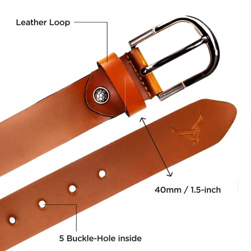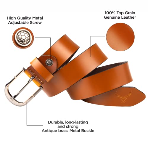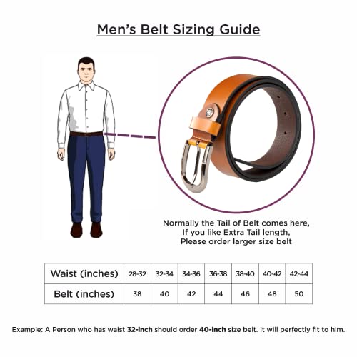 REDHORNS introduce men’s leather belt for jeans, touser, pants. The belt is crafted with smooth & pu leather which makes it durable and a suitable option for rough and tough use. The good quality of belt ensures you confident wear. The belt has a metallic finish auto lock buckle that gives a trendy look to the belt and makes it more stylish and smart which goes with all of your clothing.The sleek look and evergreen vintage color of the belt makes it an ideal choice to put it with any jeans, formal pants, trousers, etc., and on any occasion, whether it is formal or any social gathering. The total length of the leather mens belt approx 49 inch. There are multi grip with automatic lock on the mens belt to make belt fits more waistline size. One size fits all. For waist 30 inches to 44 inches. The belt can be easily adjusted to your size in just 4 easy steps I.E 1. Unscrew the buckle 2. Pull the buckle out 3. Cut the belt strap according to your size and make a hole with the punch. 4. Attach buckle and screw again. Voila your belt is ready. This casual leather belt comes in a premium gift box pamper your loved ones with this stylish belt which is suitable for any occasion like birthday gift, diwali gift, anniversary gifts, rakhi gift.