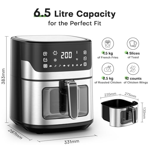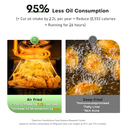 🍔 【𝟕-𝐢𝐧-𝟏 𝐌𝐮𝐥𝐭𝐢𝐩𝐮𝐫𝐩𝐨𝐬𝐞 𝐀𝐢𝐫 𝐅𝐫𝐲𝐞𝐫𝐬】Avoid cluttering your kitchen with multiple gadgets – the comfyhome air fryer alone lets you air fry, roast, bake, grill, toast, dehydrate, reheat, and keep warm. Effortless touchscreen controls make it simple to whip up everything from fries to roast chicken, catering to all your diverse cooking desires.