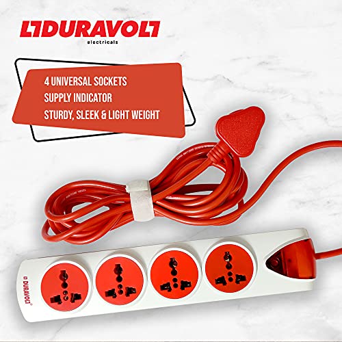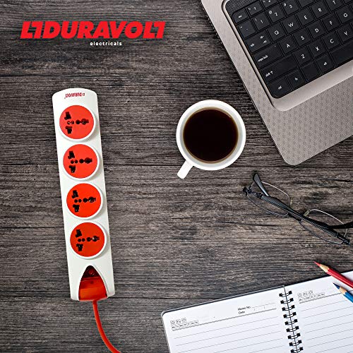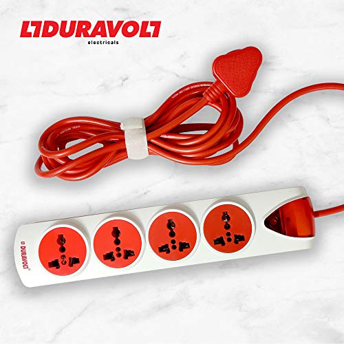 Duravolt Electrical Extension Board with 4 Meter Red Colour Cord, with One Master Switch and 4 International Adapters & Multi-Outlets
