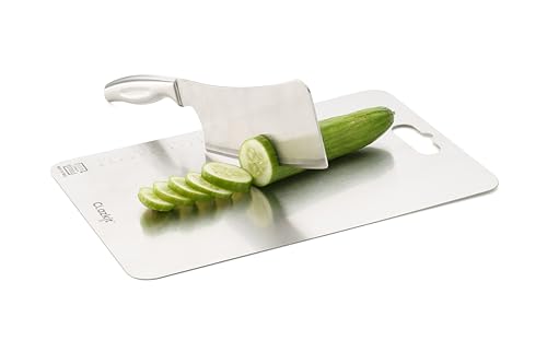 Introducing our Clazkit Stainless Steel Chopping Board – the epitome of durability, hygiene, and elegance in your kitchen. Crafted with precision and designed for both professional chefs and home cooks, this cutting-edge chopping board is an indispensable tool for your culinary adventures. Key Features: Unmatched Durability: Constructed from high-grade stainless steel, this chopping board is engineered to withstand the test of time. It resists corrosion, stains, odors, and is sure to endure the daily rigors of chopping, slicing, and dicing. Hygienic and Non-Porous Surface: The non-porous surface of our stainless steel chopping board prevents the absorption of liquids, odors, or bacteria, ensuring a consistently clean and safe food preparation environment. Knife-Friendly Surface: The smooth and non-abrasive surface of the stainless steel board protects your knives from dulling, keeping them sharp and ready for precise cutting tasks. Easy to Clean and Maintain: Effortlessly maintain a spotless kitchen with this easy-to-clean chopping board. Simply wipe down the surface with a damp cloth or wash it with mild soap and water. The stainless steel material is also dishwasher safe for your convenience. Versatile Design: The sleek and modern design complements any kitchen aesthetic, making it an attractive addition to your cooking space. Its versatile size and design make it ideal for various food preparation tasks, from chopping vegetables to slicing meats. Built-In Stability: Equipped with non-slip silicone feet, this chopping board offers excellent stability during use, ensuring a safe and steady cutting surface. Invest in the best with our Clazkit Stainless Steel Chopping Board – a kitchen essential that promises longevity, hygiene, and impeccable functionality for all your culinary endeavors. Elevate your cooking experience and bring a touch of sophistication to your kitchen with this exceptional chopping board.