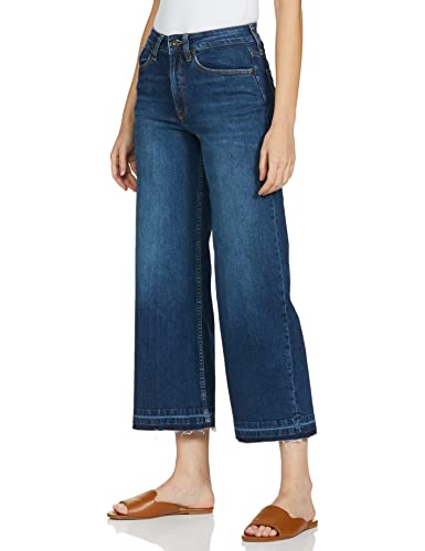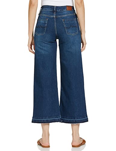 73 Fashion-Signature Brand Carrier Stylized 5 Pocket, High Rise Wide Leg Fit Ankle length Jeans, Med Used Heavily Faded With Washed look Frayed Hem & Zip Fly With 5 Belt Loops