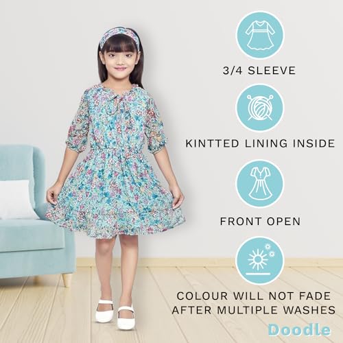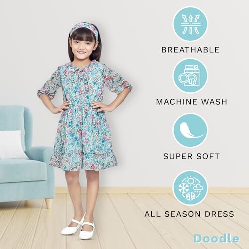 Designs speak a language of elegance as well as comfort so dress up your girl with the latest designs from the house of Doodle. This dress will surely get her noticed at an upcoming party. Our dresses are designed to be smooth and comfortable to wear for kids. This regular-fit dress will go well with matching belly shoes. This dress is ideal for special parties, functions, weddings, festivals, and occasions. Cool, comfortable, and full of fashion are what make the dresses for girls an amazing wardrobe collection for you.
