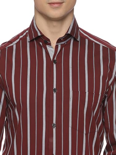 Ignite your style with the Firebird Lycra Stripes Shirt in Maroon from our blazing Firebird Collection. Crafted with 100% cotton lycra, this shirt ensures unmatched comfort and flexibility. The striking maroon color, paired with sleek stripes and twill weave, creates a dynamic and distinguished look. With a comfortable regular fit, cut-away collar, and round cuffs, you’ll exude confidence and sophistication at any formal affair. Complete with a V-shaped pocket and inside grey yoke, this shirt is the epitome of sizzling style. Set your fashion ablaze with the Firebird Lycra Stripes Shirt.