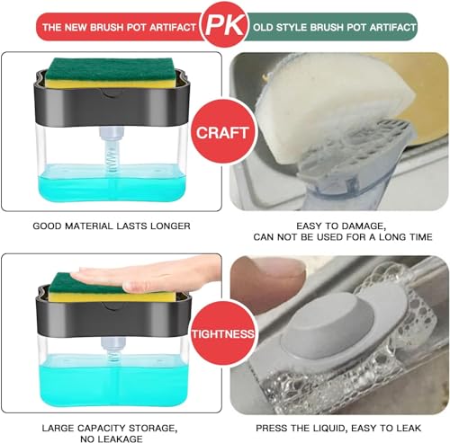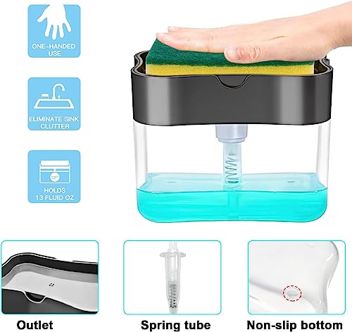 One-hand Operation: Press the dish soap dispenser caddy’s top plate down with one hand and dispense the soap directly onto the sponge.Large Capacity: The soap dispenser sponge holder has a capacity of 13 ounces so you don’t have to refill it often. And suitable for all kinds of liquid soapQuality Material: Soap dispenser sponge holder made of unbreakable, corrosion-resistant and safe transparent ABS+PC plastic making it long lastingPrecise Soap Dispenser: Dispense the perfect amount of
