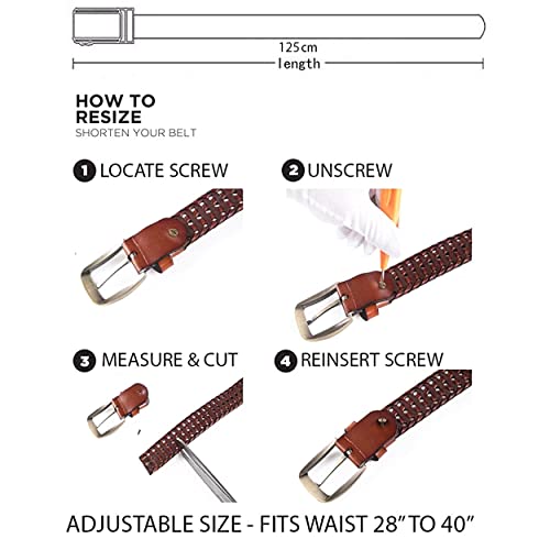 Belt Type Leather Braided Belt Target Gender Men Material Leather Closure Type Buckle Pin Closure Material Zink Alloy Belt Length 125 CM Belt Width 3.5 CM Waist Size 28-40 Inch Number of Hole Multi Hole Trim To Fit Yes Adjustable Waist Size Yes