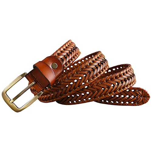 Braided Design leather material provides you with a soft and comfortable touchThis is such a convenient wear way that you don’t need to punch holes on the belt, just find the holes everywhere and insert the pin buckle to finish itComes with a vintage prong buckle made of zinc alloy, a very durable metal with strong resistance to corrosionThere are multi holes on the men’s belt to make the belt fits more waistline size. Perfectly fit on 28-40 inches