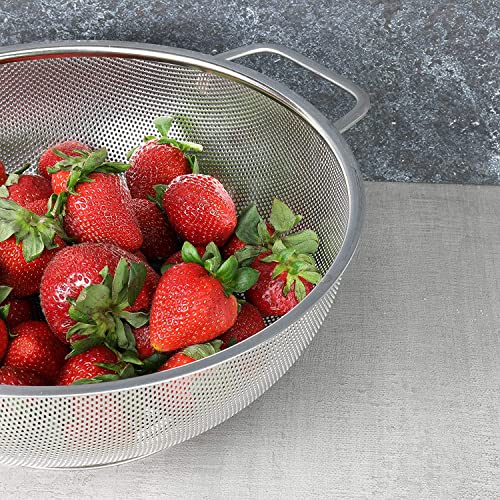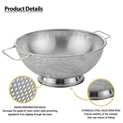 MADE OF HIGH QUALITY STAINLESS STEEL: This heavy duty colander, which will last for decades, is made of solid, high quality stainless steel, and ergonomically designed. It’ll be your favorable kitchen gadget. You’ll notice that they are much more resistant to bending, breaking, and dents.