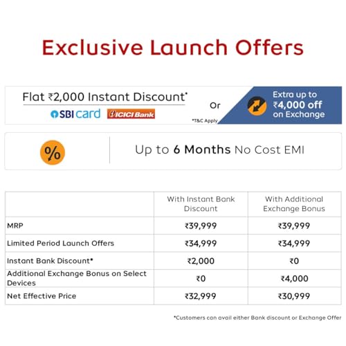 Flagship level camera – Primary 50MP Sony IMX920 Night vision camera with OIS, 4K video recording at Night and upto 8K video recording during day time, 2x Portrait, Live photo and Supermoon modes. 8MP Ultra-wide angle camera with 116 degree field angle.