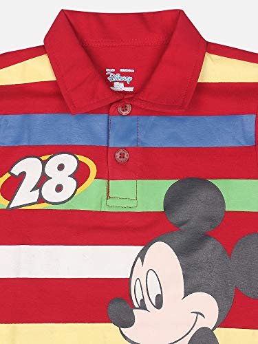 Red Mickey & Friends Striped Polo Neck Cotton Fabric T-Shirts