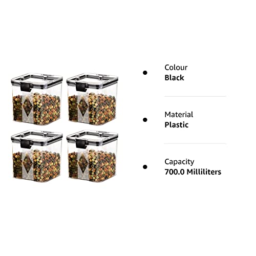 Package Content: 4 Pcs Container Jar Set With Cap | Material: Premium Quality Plastic | Airtight / 100% Leak Proof. | Capacity: 700 ml | Color: transparent