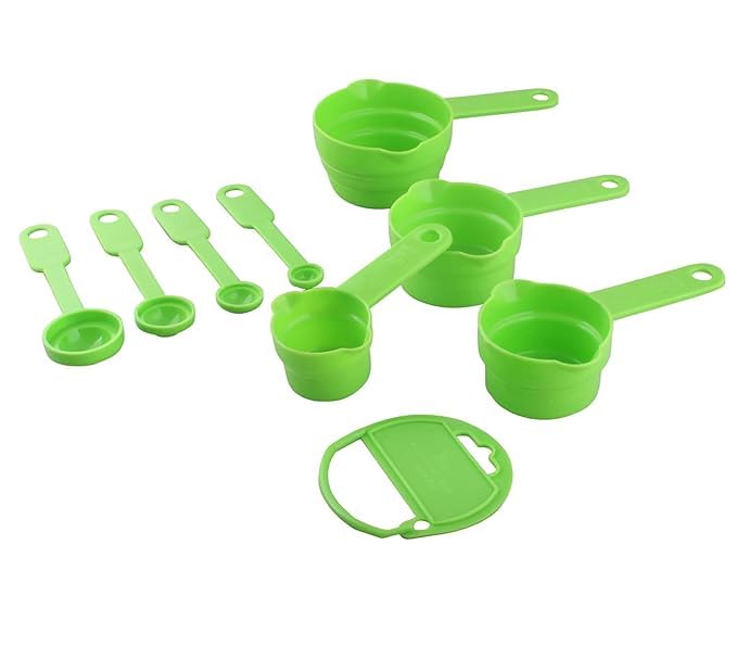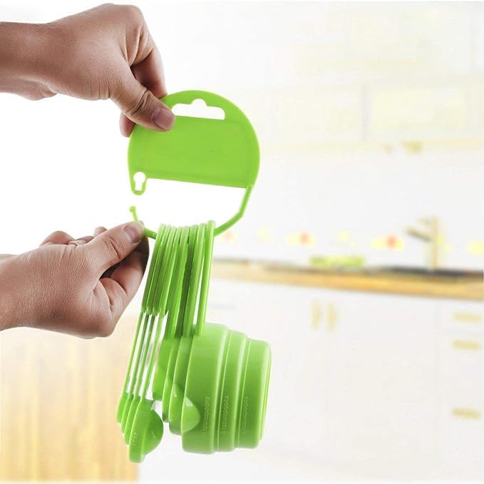 Ring holder for easy removal of spoons/cups.Spoons and cups nest into each other for convenience in hanging and storing.Made from high quality Durable Plastic.
