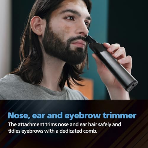 Precision beard styling- the trimmer and its multi-comb set offer 17 length settings from 0.5 to 16 mm in up to 0.2 mm precision steps for shorter and longer beard styles. The narrow design of the precision trimmer attachment makes it easy to create sharp edges and fine details. The metal trimmer attachment cleans up cheeks, chin and neck to finish your look