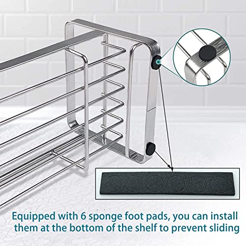 The caddy organizer provides ample space to hold various items such as sponges, scrubbers, brushes, soap bars, and other small kitchen essentials, helping to keep your sink area neat and clutter-free.