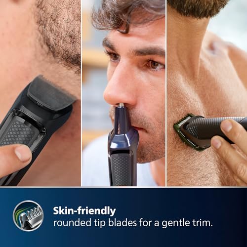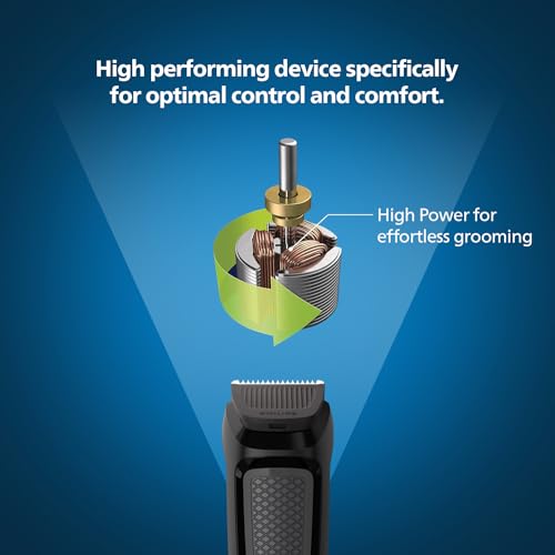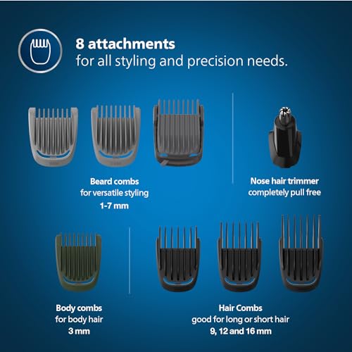Advanced styling & precision 9-in-1 trimmer for maximum versatility Craft your own personal look with this versatile trimmer, which includes 9 quality tools for styling your face, head and body. Its self sharpening stainless steel blades offer a perfect trim and the no-slip rubber grip improves comfort and control.