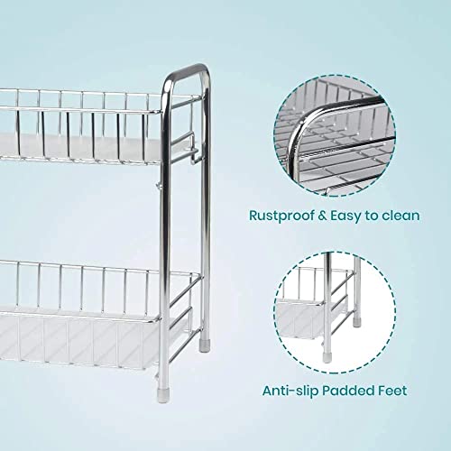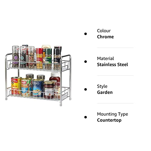 Finish Type: Chrome | Specific Uses of Product: 2-shelf shelving unit for your kitchen, office, bathroom, pantry, bedroom, Etc.