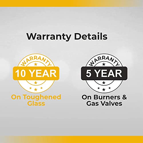 Lifetime Warranty: Whirlpool offers 10 years warranty on toughened glass and 5 years on burners and gas valves