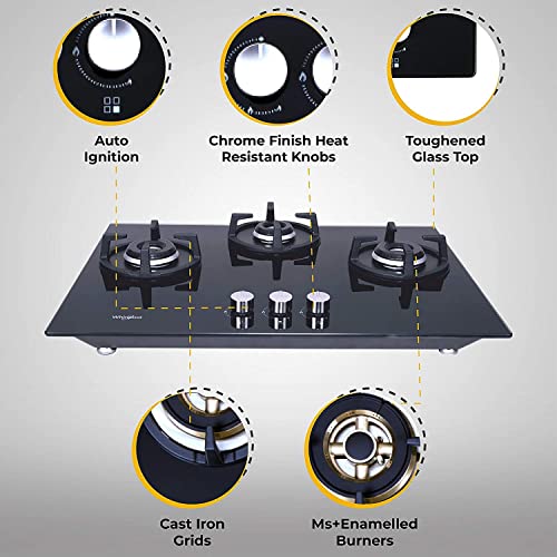 1 Small and 2 Medium Ms + Enameled Burners | Hybrid Design – Built-in + Free Standing | Auto Electric Ignition (Battery Operated) | 8 mm thick Toughened Glass