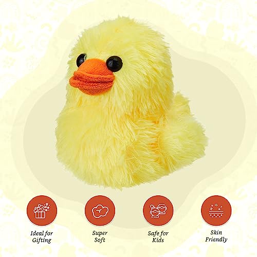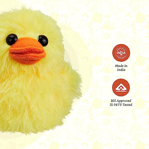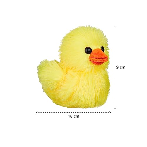 DIMENSIONS: 9 x 18 x 9 cm (H x L x W); WEIGHT: 30 gms; COLOUR: Yellow;PACKAGE CONTENTS: 1 plush toy (Duck); Made in India
