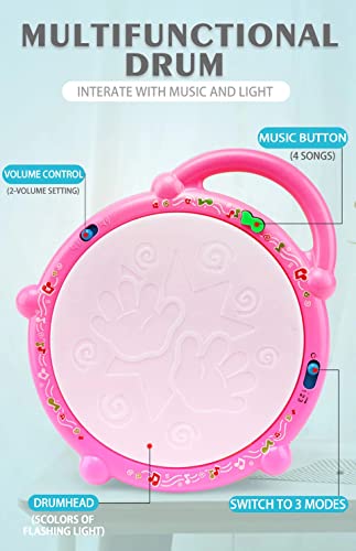 Multiple music modes drum set for kids – In different modes, your Kids can enjoy variations of music with soft flashing lights, which has interesting sound effects, volume plus or minus key to finding a suitable and safe baby volume.