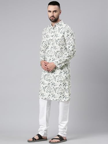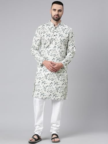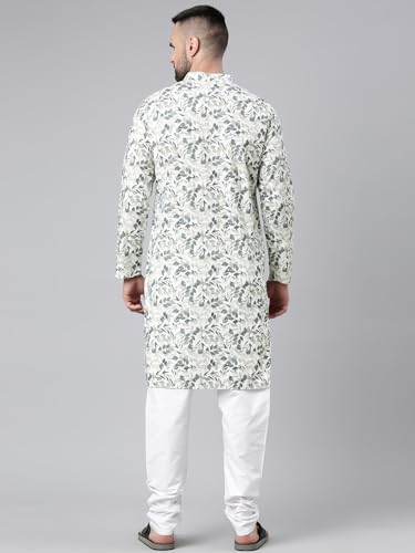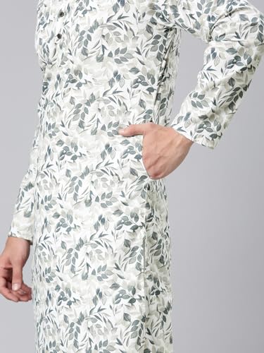 Majestic Man Cotton Mandarin Collar Ethnic Motifs Printed Long Kurta for Men