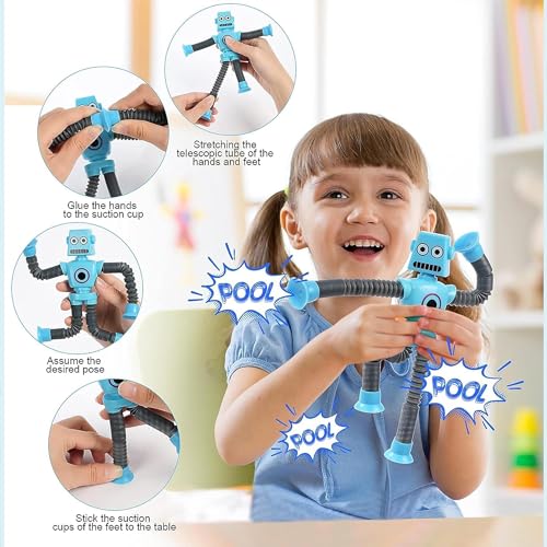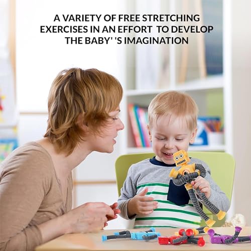 [High Quality Materials】The pop tube sensory toy robot toddler suction Cup toys are made with high-quality materials that are completely safe for kids can withstand a lot of fidgeting, popping, stretching, pulling and bending.