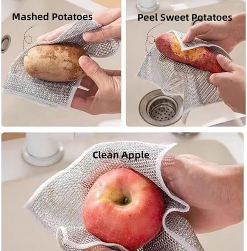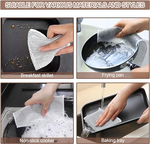 What’s Wire Dishcloth : This Wire Dishwashing Rags is made of high quality fabric and silver wire. It is durable and easy to use. Ideal size of 20*20cm for easy handle. Weep and keep clean with less time and effort.