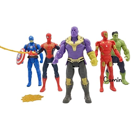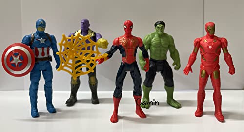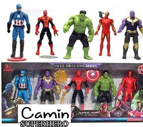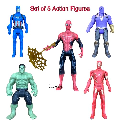 Camin superhero action figure toy set comes with 5 different superhero to play with, can be placed as display for superhero lovers, build quality is supreme. A pack of 5 superhero action figures is a collection of toys that represents a variety of different superhero characters. These action figures are typically made of plastic or another durable material and are highly poseable, allowing for a wide range of dynamic play. The action figures are often designed with attention to detail, with features such as realistic costumes, accessories, and detailed facial features. Unleash the power of imagination with this set of 5 superhero action figures! Each figure is intricately designed with dynamic poses, lifelike features, and vibrant colors that bring your favorite heroes to life. With incredible attention to detail, these figures capture the essence of each character. The set includes a diverse group of heroes, including those with superhuman strength, agility, and intelligence, making it a must-have for any fan of the genre. These figures are fully posable and come with interchangeable weapons and accessories, allowing you to create your own epic battles and adventures. Whether you display them on a shelf or use them for playtime, this set of 5 superhero action figures is sure to ignite your imagination and inspire your inner hero!
